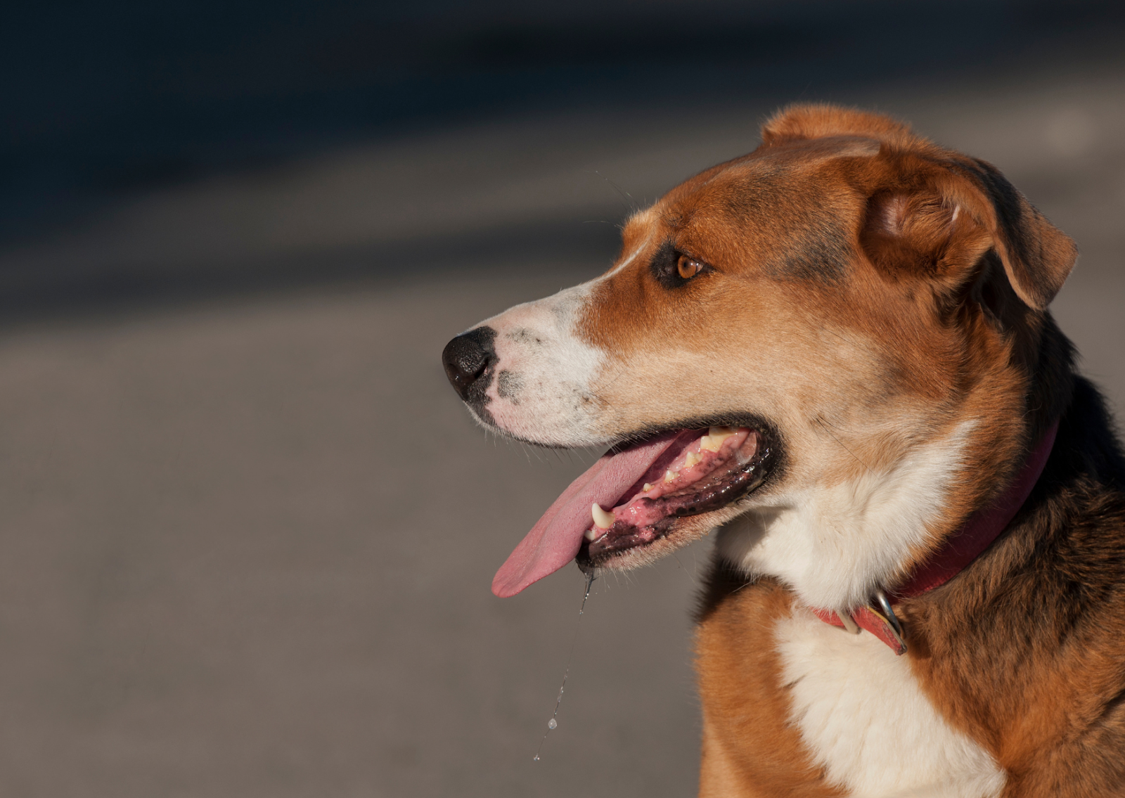 暑い季節に、パンティング(ハァハァとする呼吸)とともに大量のよだれが出る場合は、熱中症の疑いがあります。舌の色が赤く、ぐったりしている場合は特に注意が必要です。